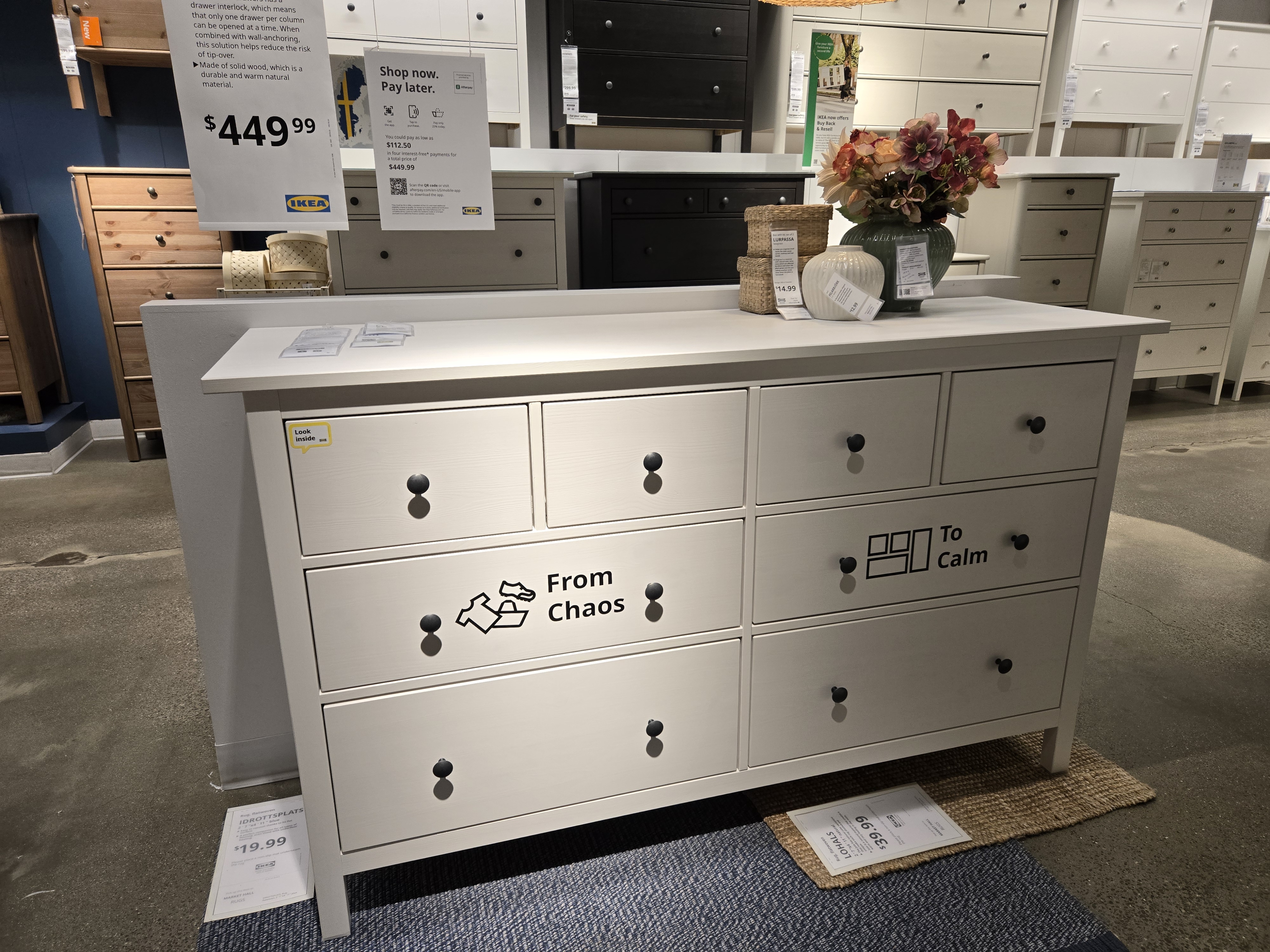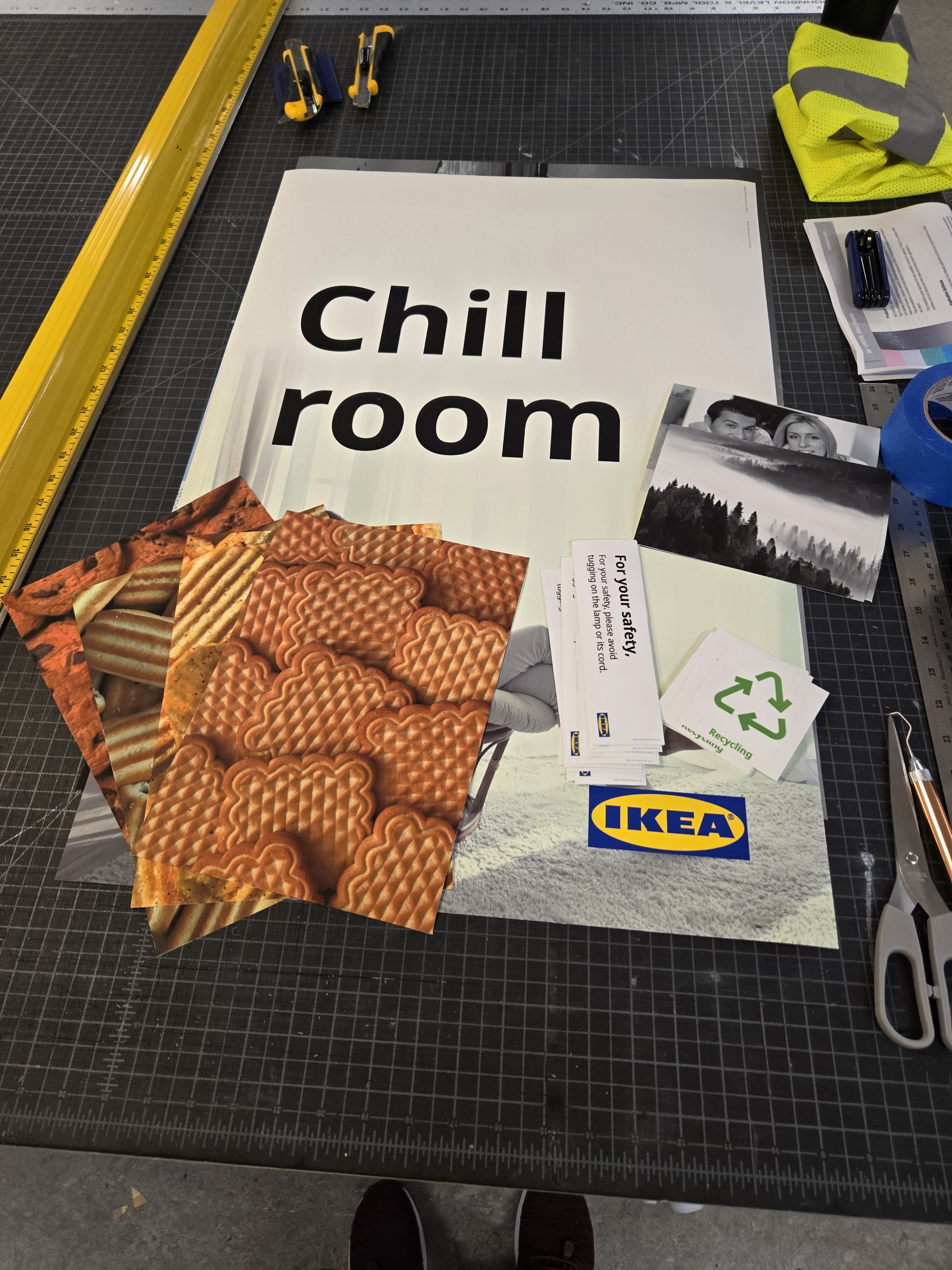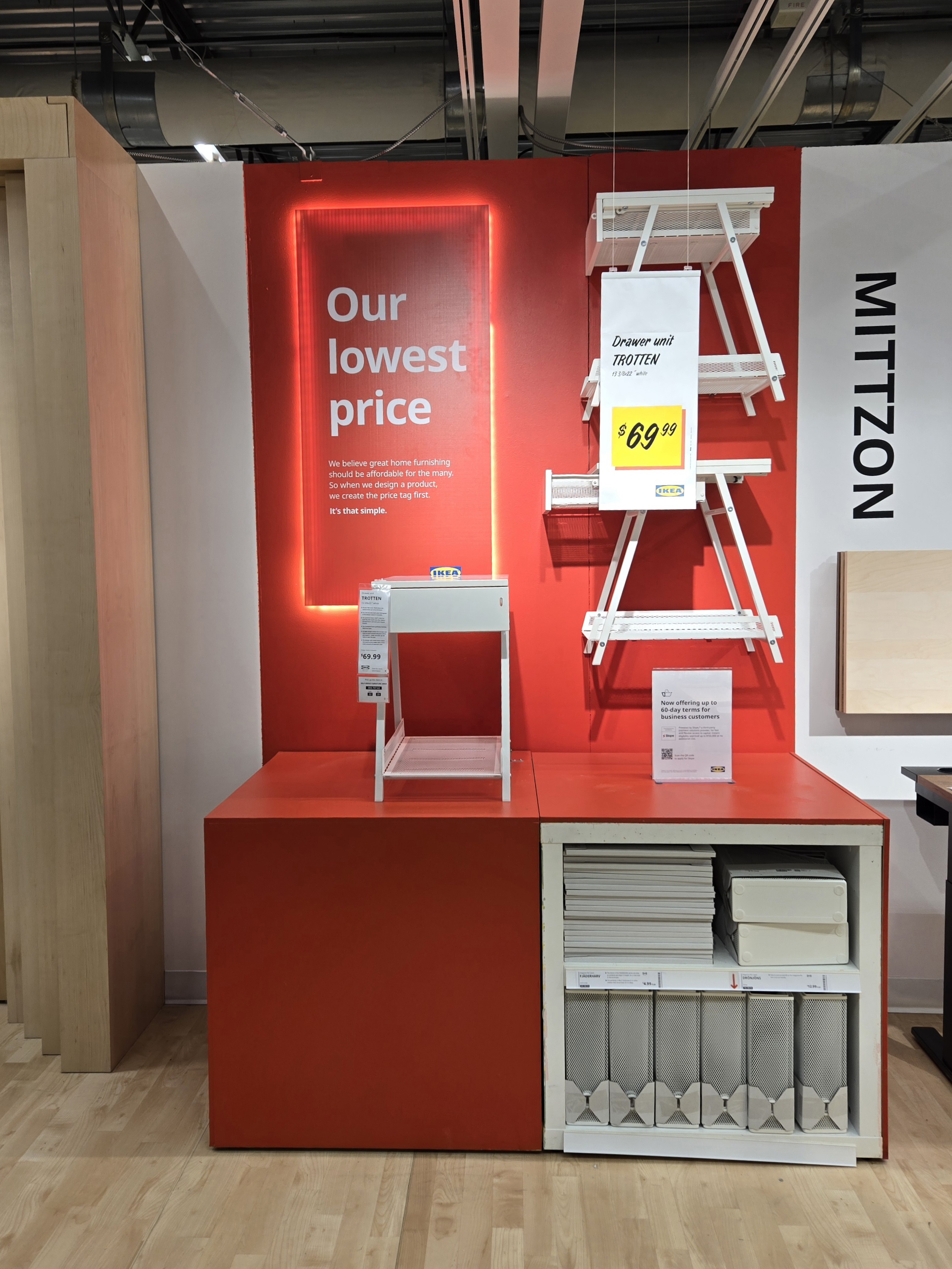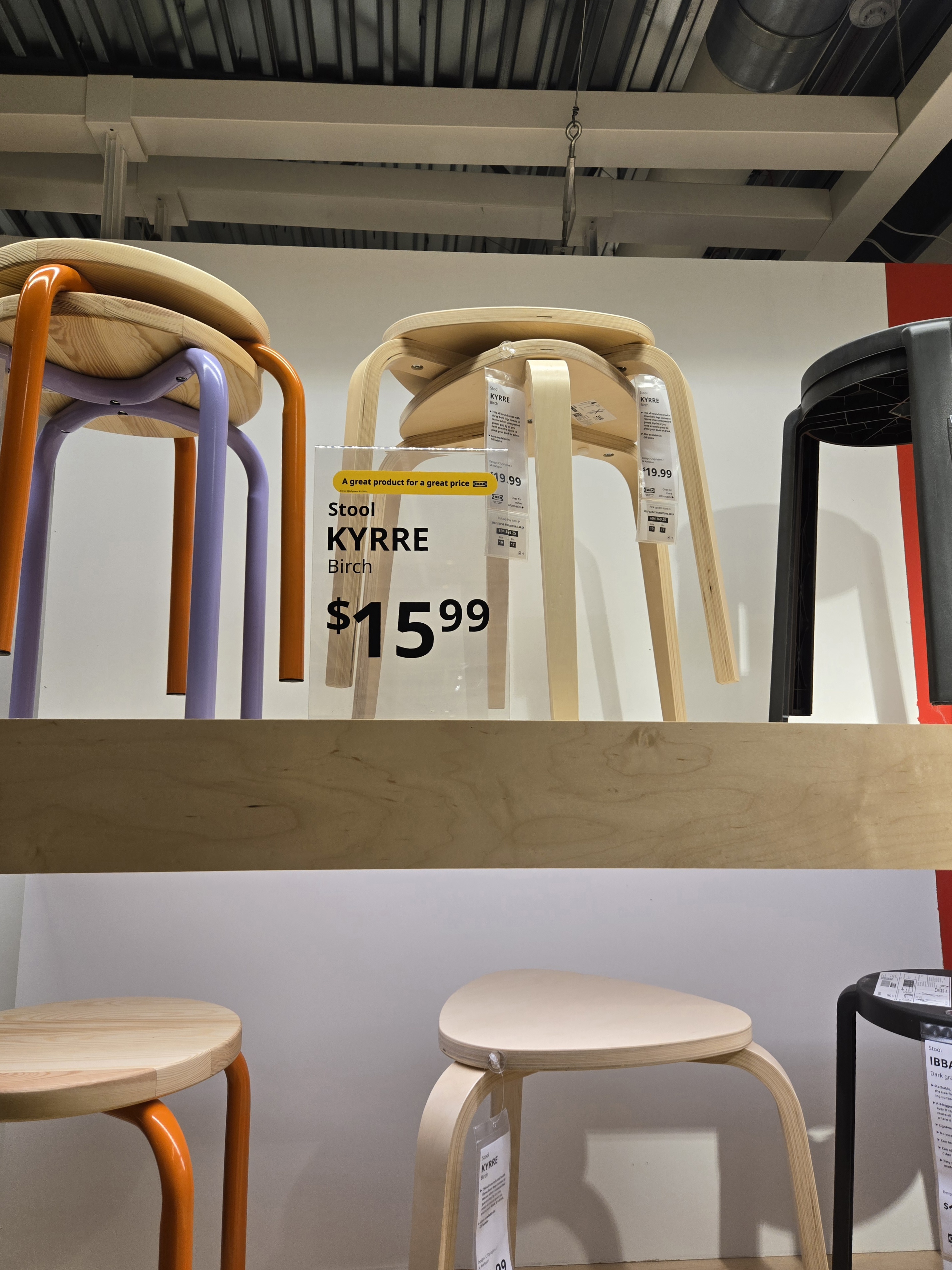IKEA highlights Breath-Taking Items with their own special graphic requirements (called a tactical box); These are created by printing the yellow box, cutting, and laminating it- The price is printed and applied later, which enables easy changes.