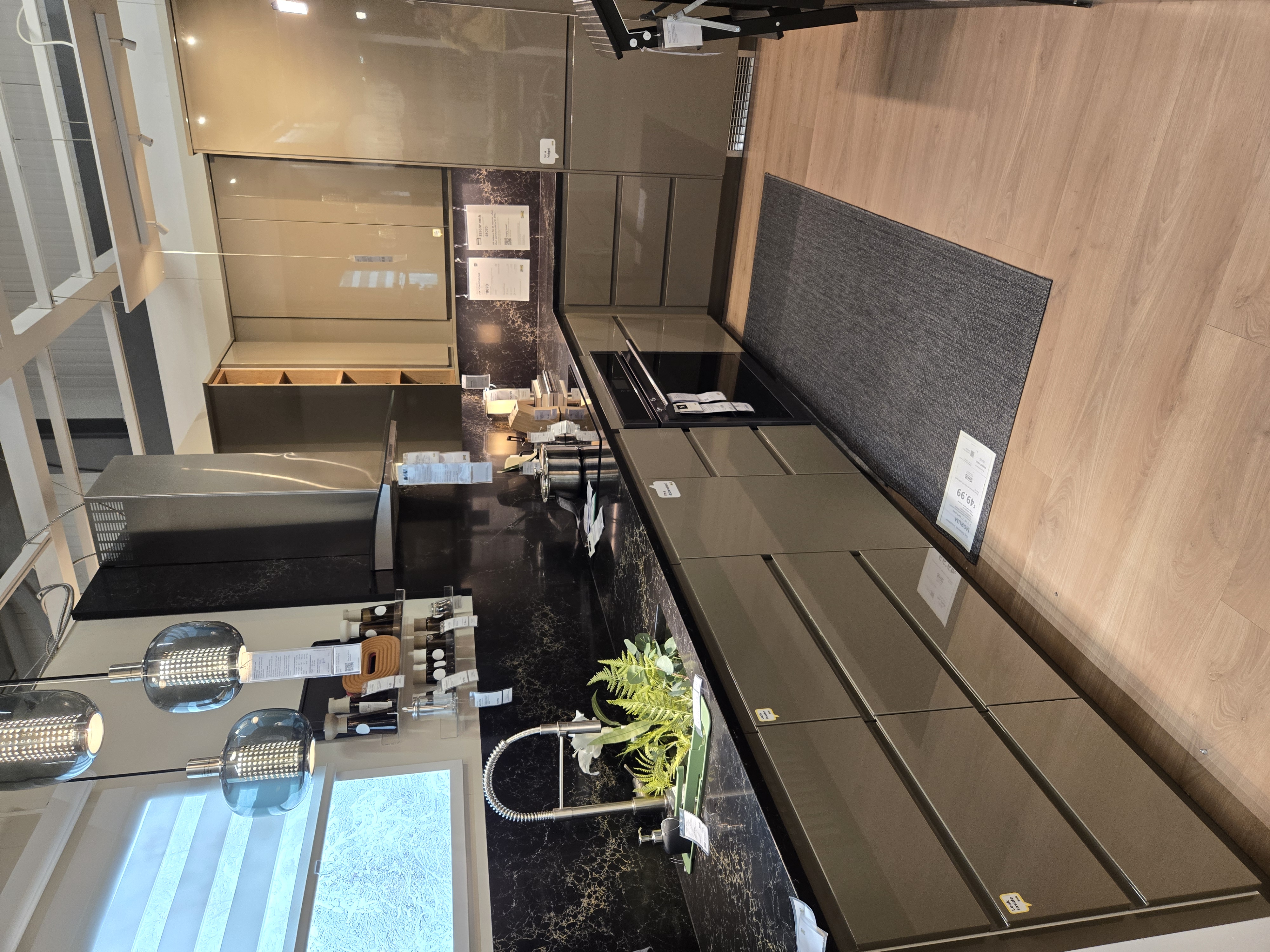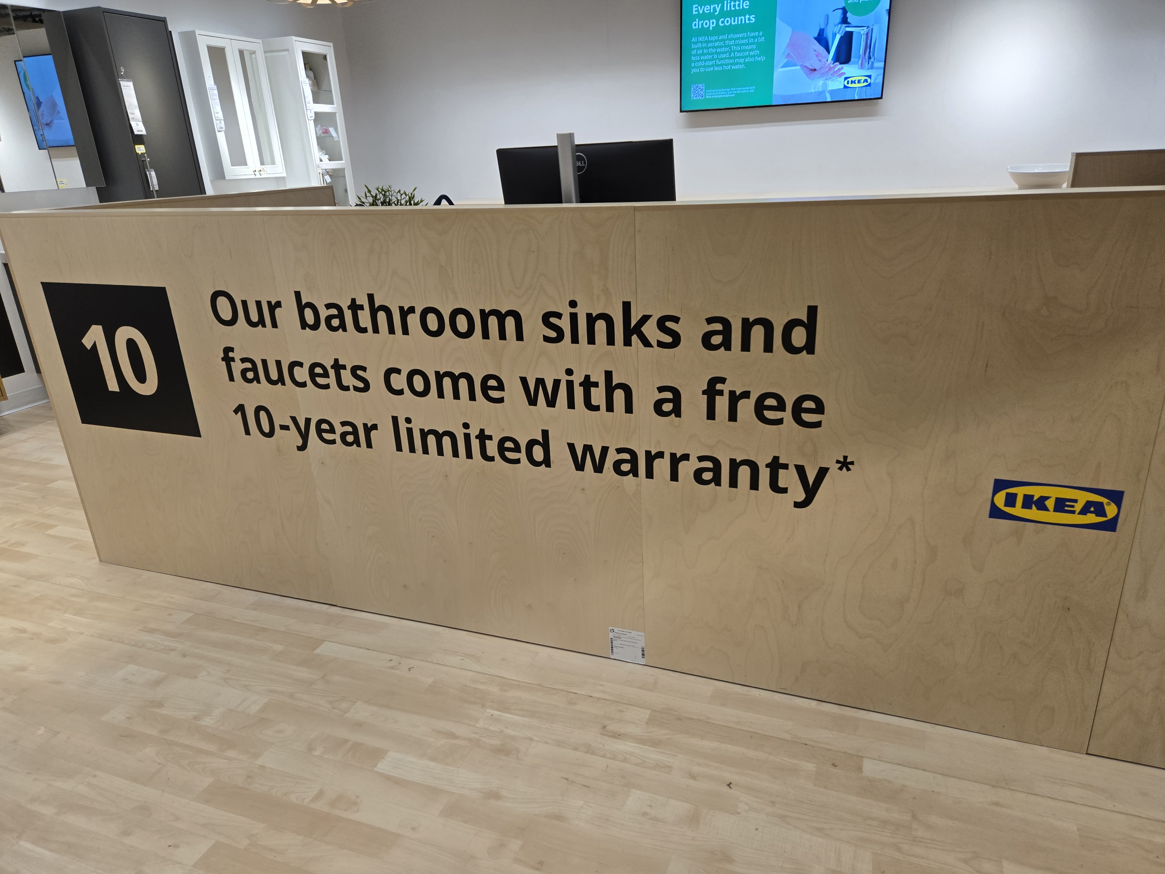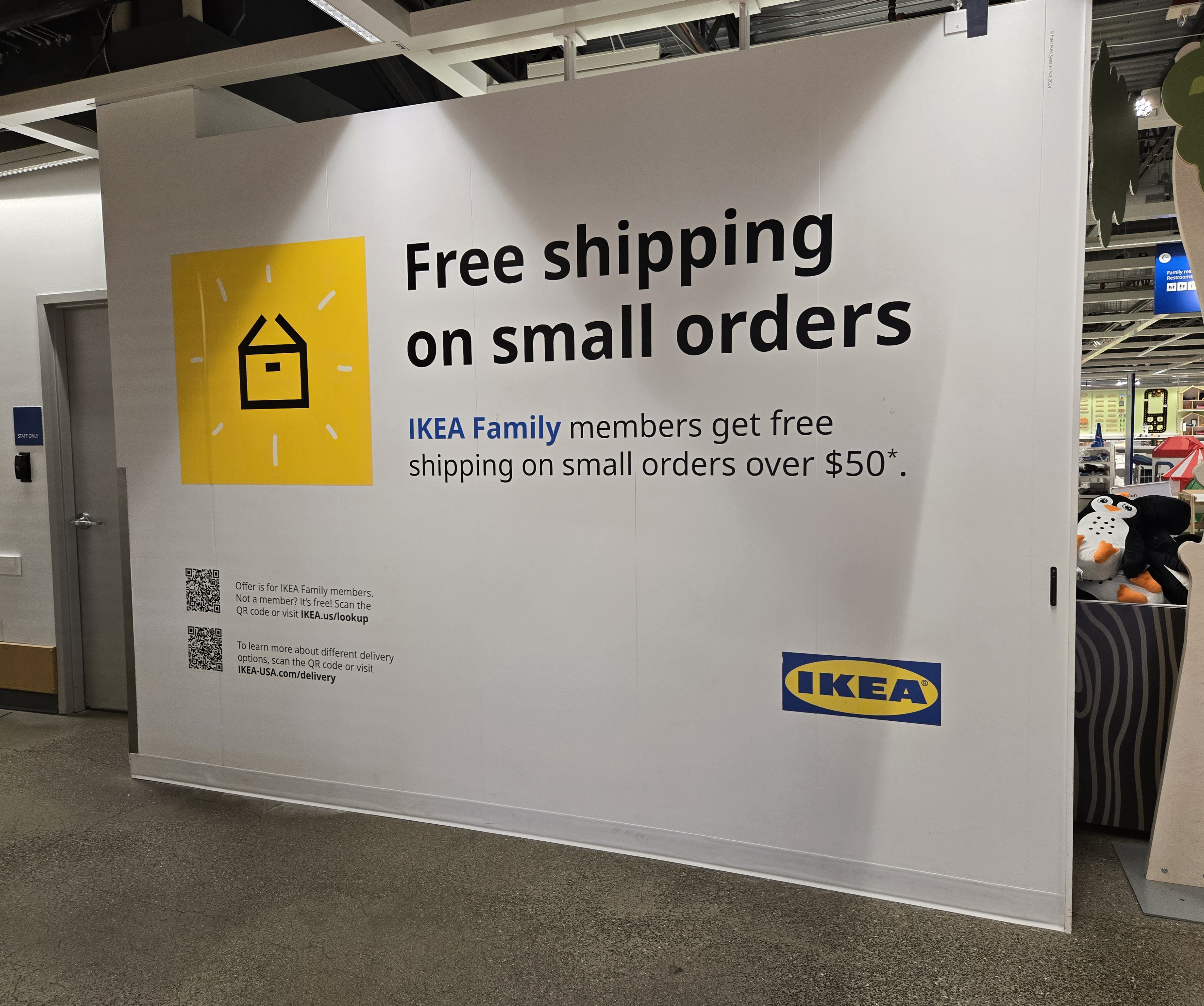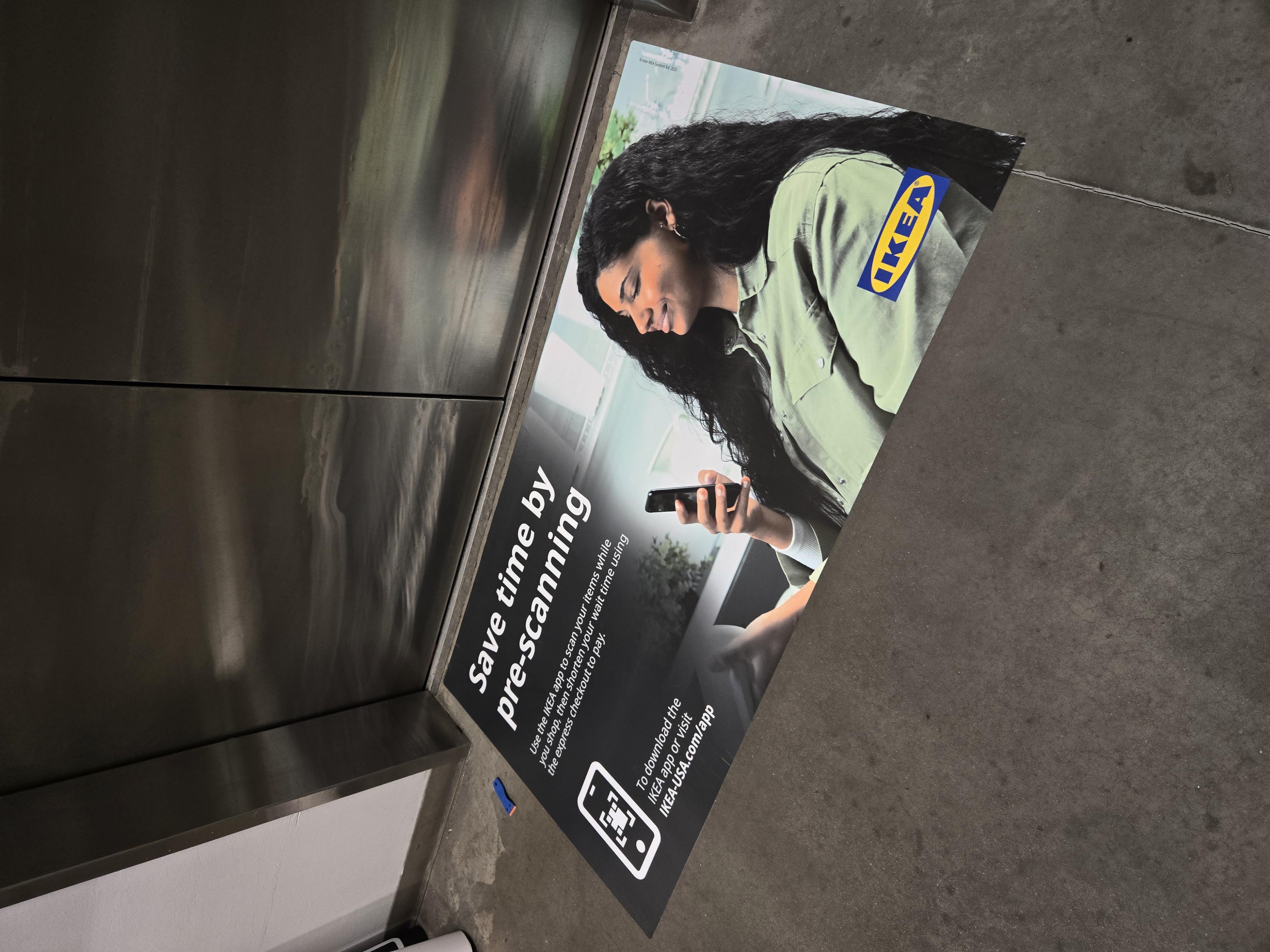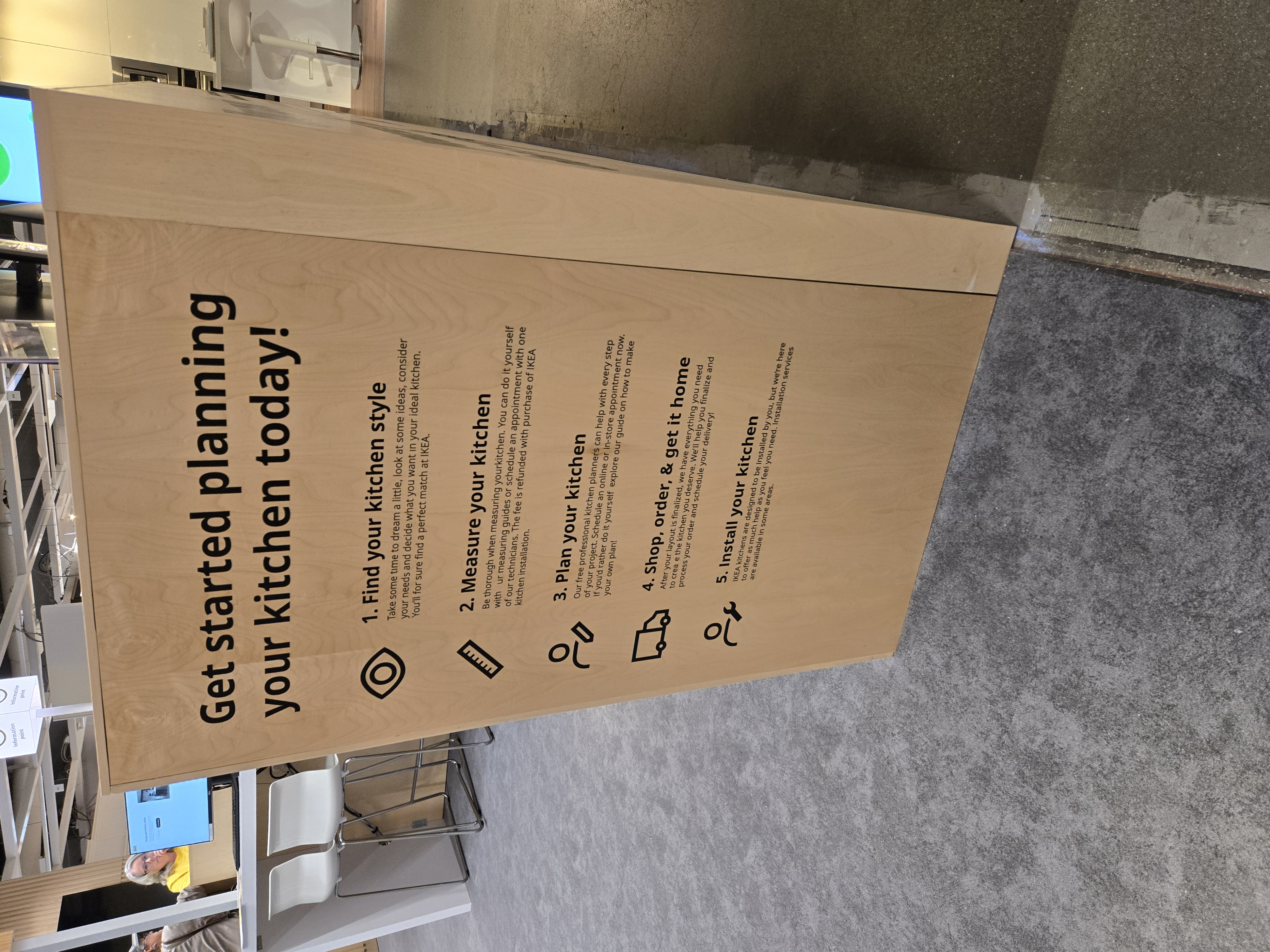 Sometimes a kitchen display is too small to display a door, and rather a doorway into another room is needed – That’s where the Graphics team comes in. The current vinyl has suffered some damage and needed to be removed and replaced; But I wanted to create a more engaging image and use IKEA furniture instead of the stock Adobe image that was there previously. Using Photoshop I elongated the perfect image from the IKEA asset database to fit into the 36" x 80" opening, What an improvement!