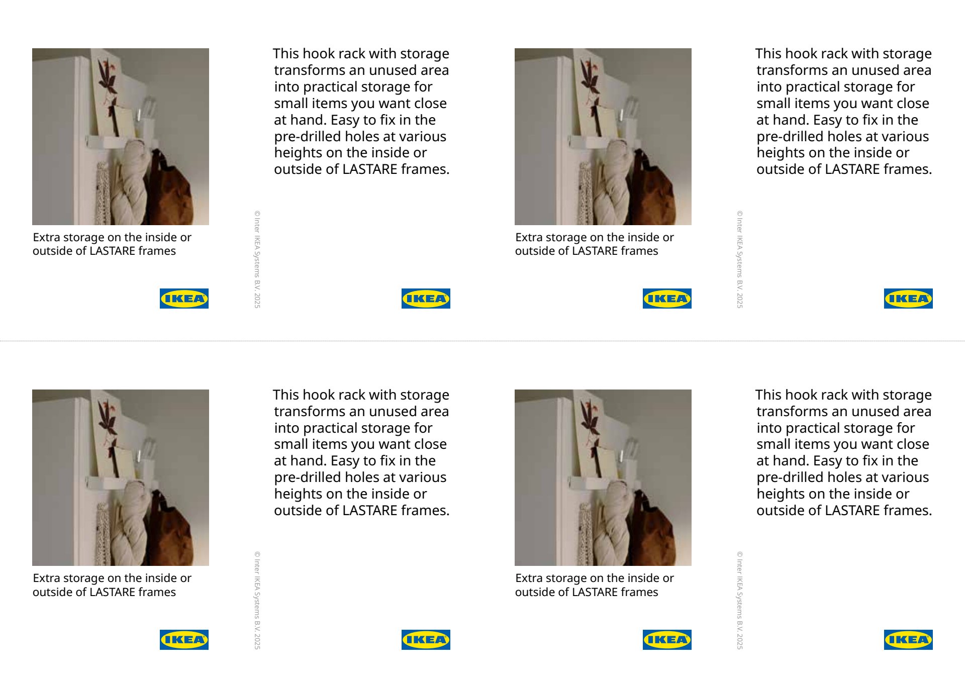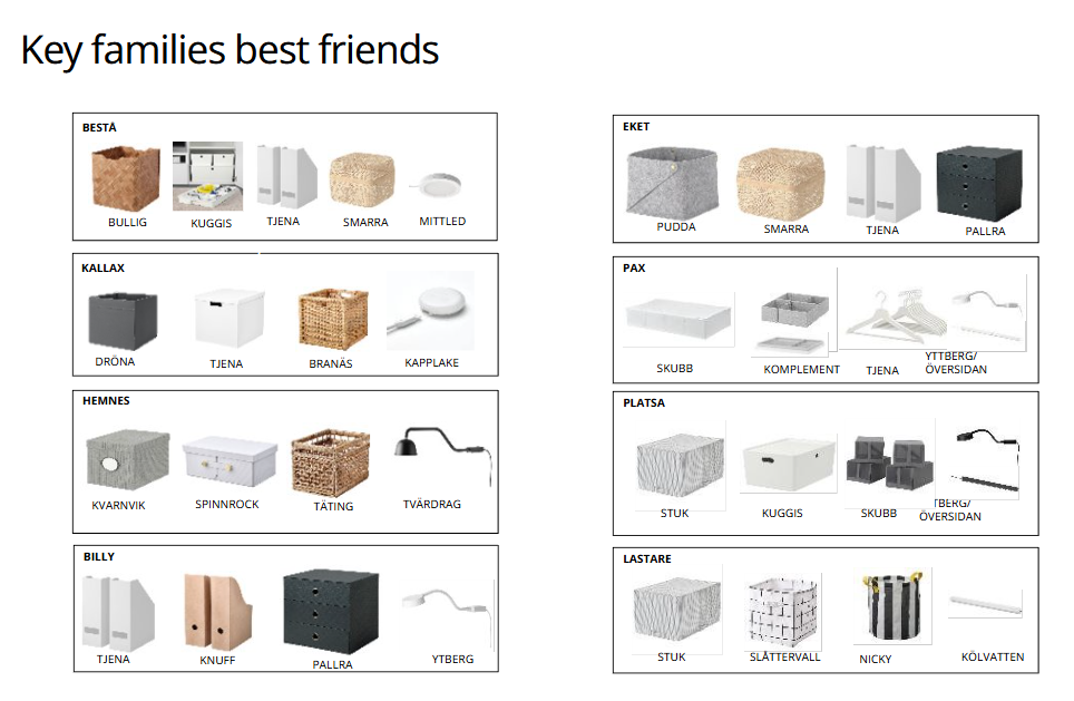 Some of the articles given were outdated and discontinued, so modifications had to be made with updated article names. An illustration for the BUMERANG hanger did not exist in IKEA’s catalog and had to be created using Illustrator.