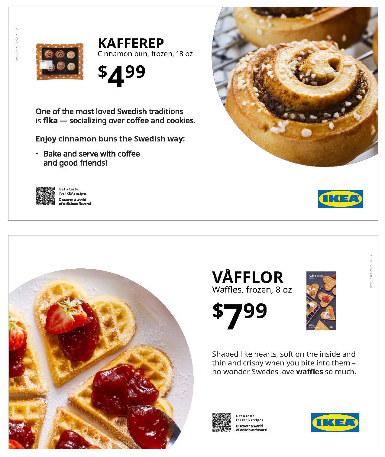 For this request, I created a series of three signs showcasing some of the most popular Swedish delicacies – KAFFEREP cinnamon buns, VÅFFLOR waffles, and SJÖRAPPORT salmon. I included information about each item in the IKEA tone of voice, of course. Images sourced from IKEA assets and created in Illustrator.